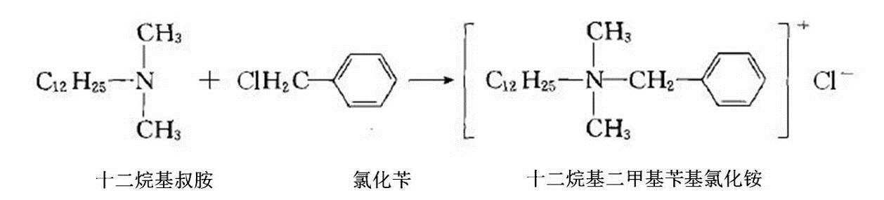 (1)反應原(yuan)理及反應方(fang)程式:采用十(shí)二烷基叔胺(àn)與氯化苄反(fan)應合成十二(èr)烷基二甲基(ji)苄基氯化铵(an),反應方程式(shi)如下。